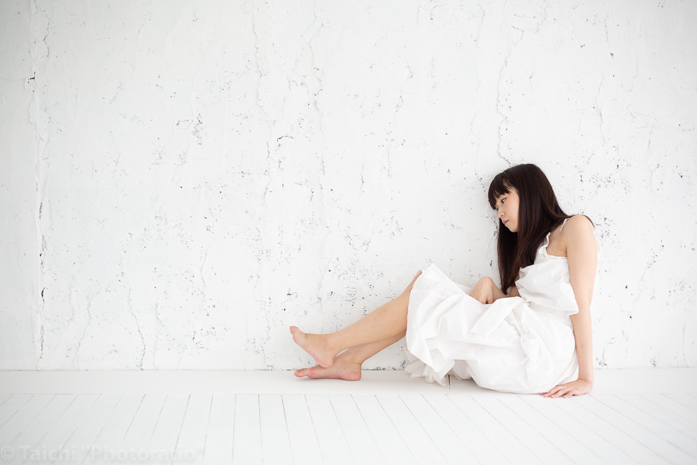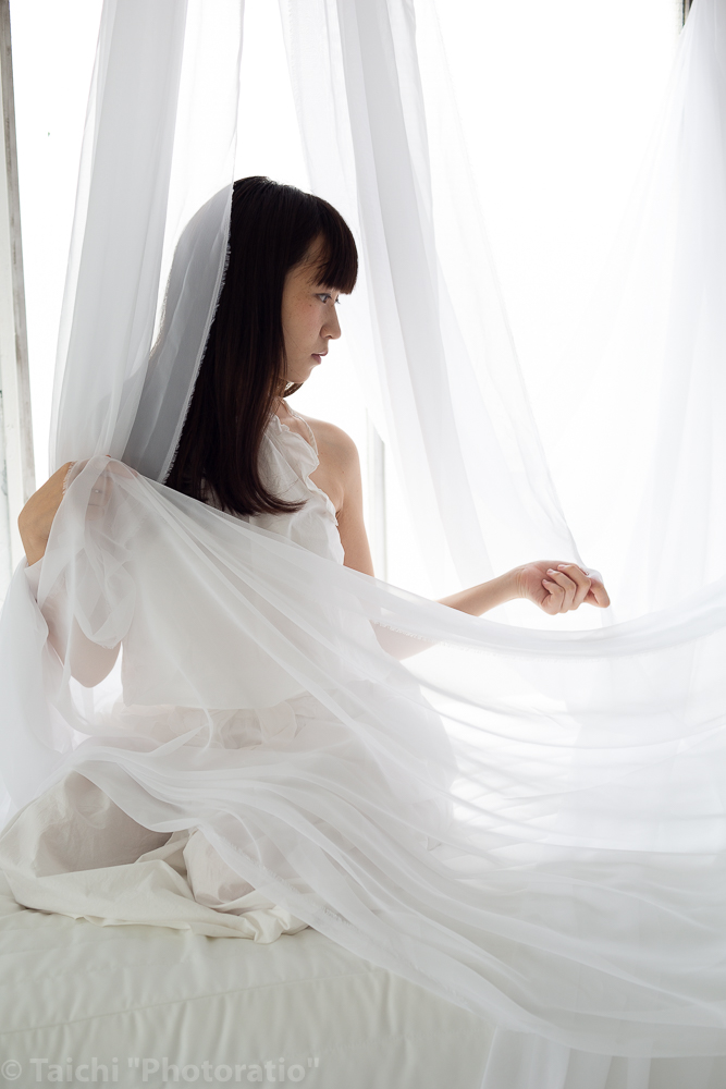スタジオではこんな写真が撮れますよ。というサンプルです。上の写真はベッドの上にシフォン生地(無料レンタル生地。20m分あります)を垂らして撮影しました。